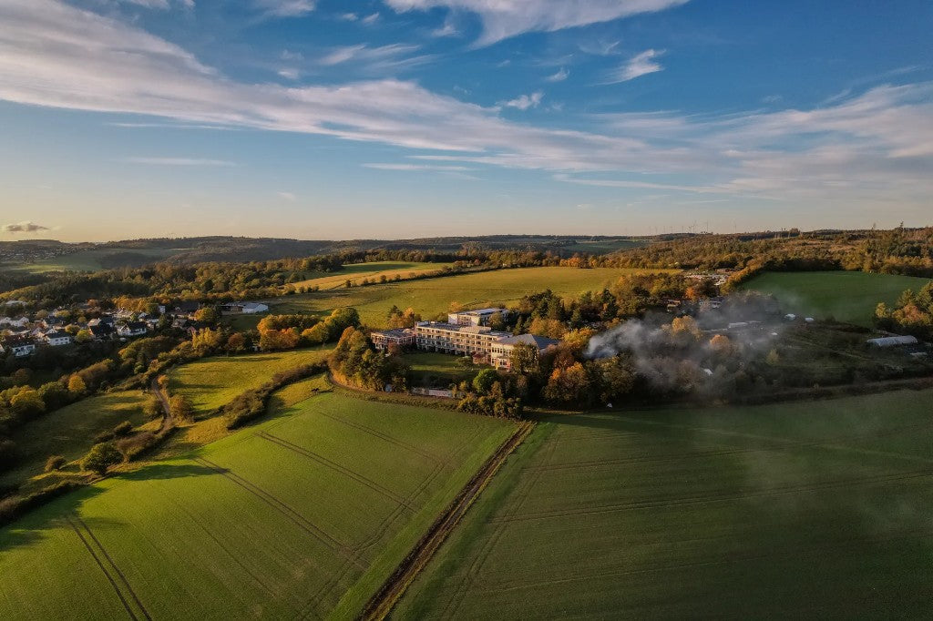 The Bhakti Marga Centre is located at Shree Peetha Nilaya in Springen, Germany, surrounded by nature in the Taunus region near Wiesbaden and Frankfurt. The full address is: Am Geisberg 1–8, 65321 Heidenrod–Springen, Germany. You find more information here.